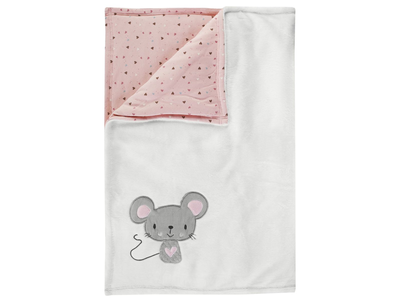 Die weiche Kuscheldecke mit niedlichem Maus-Motiv ist perfekt zum Schmusen. Die Decke kann bei 60° gewaschen werden und ist 100 x 70 cm groß. Eine tolle Geschenkidee zur Geburt.