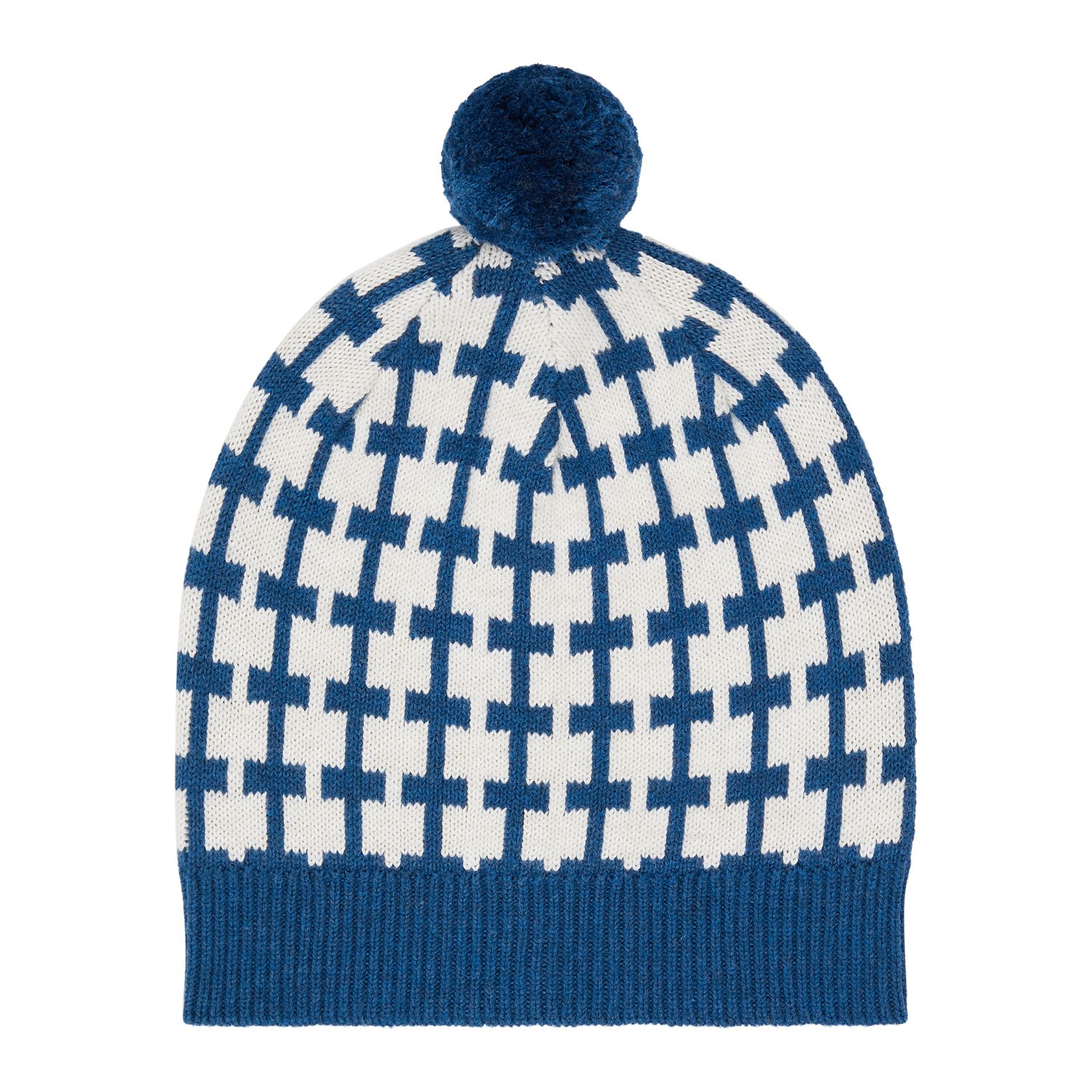 Strickmütze Rudolfo mit Bommel, blau/weiß oder orange/weiß