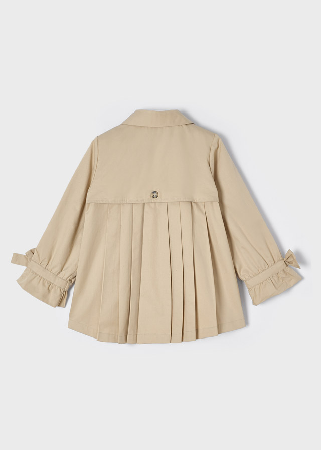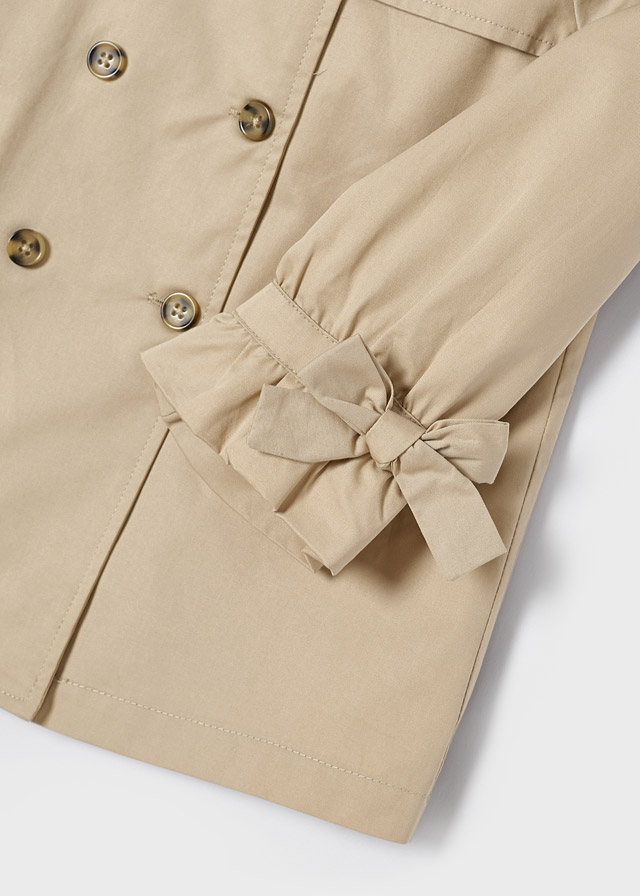 Der elegante Trenchcoat mit ausgewählten Knöpfen ist innen leicht gefüttert und ideal für kühle Abende. An den Ärmeln befinden sich Schleifen. Der Trenchcoat ist zeitlos und kann wunderbar zu Kleidern kombiniert werden.